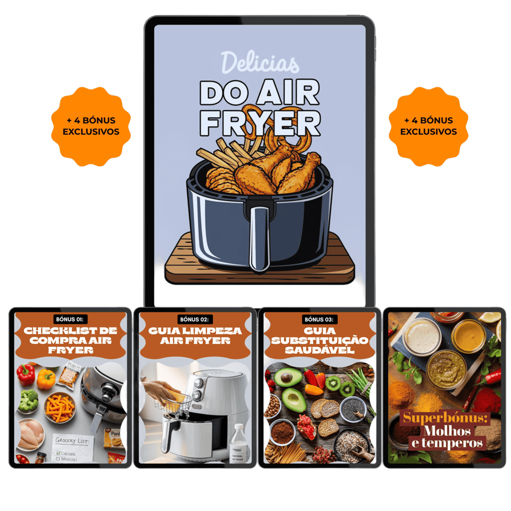 Não é necessário ter um modelo avançado. As receitas funcionam com qualquer Air Fryer, desde que esteja em boas condições de uso. Não importa a marca ou modelo, você vai conseguir preparar todas as receitas do e-book sem problemas.